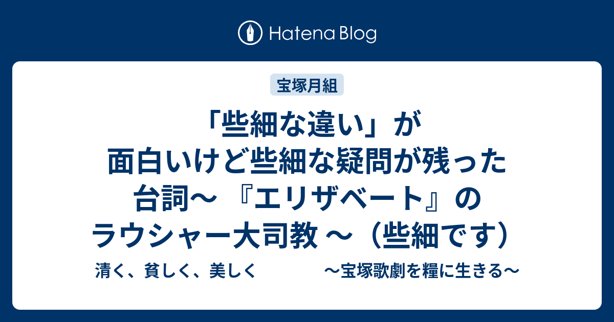 些細な違い が面白いけど些細な疑問が残った台詞 エリザベート のラウシャー大司教 些細です 清く 貧しく 美しく 宝塚歌劇を糧に生きる
